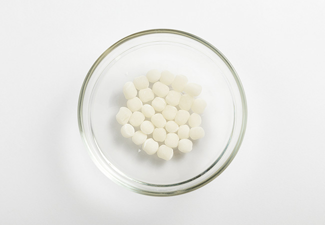 冷凍耐性があり、解凍後再冷凍して保存できる、粒状の求肥餅。 サイズ・色等もご相談の上、可能な限り対応いたします。